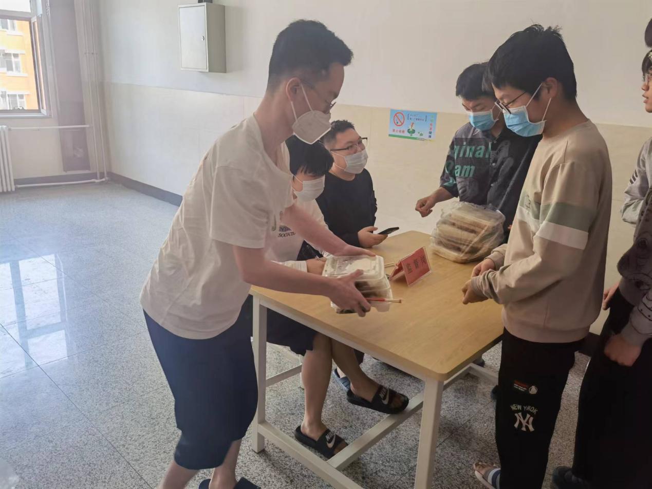 因学校三餐供应制度的改变,三餐的分发方式也有所调整,就需要有固定的工作者参与三餐的分发。210503班的冯志超就是其中一位。三餐运送到达,搬运至楼上,每个宿舍派一人前来取餐,对应表格核对数目后将饭菜发放到每个人手中,这便是他的工作。这项工作虽然简单,但需要认真仔细对待,以便确保每个人都能及时领取到餐食餐。他表示:“这微不足道的辛苦换来了同学们的一声声谢谢,这声谢谢,看似是一种出于礼貌的表达,但也是对他的努力付出的一种认可。”