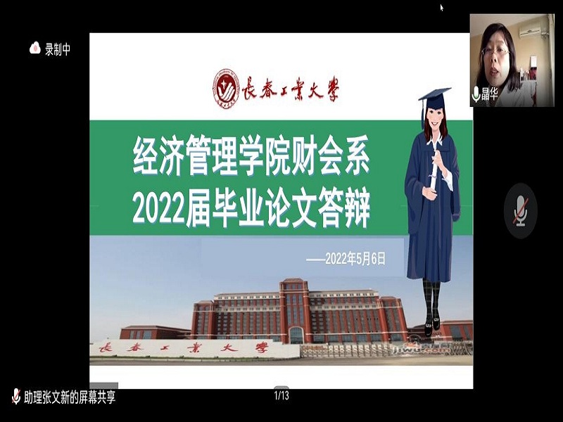 优德88财会系2022届本科毕业论文(第一批)线上答辩会于2022年5月6日在腾讯会议上顺利举行。答辩组长财会系主任纪晶华,秘书刘慧,答辩组成员高媛、张雷、徐江、赵英鑫、赵晔、李佳蔚,以及财会系所有指导教师均视频参加。此次参加答辩的有会计学专业53人;财务管理专业32人;会计学第二学位3人共计88名。财会系毕业生逐一进行,下面让我们来看看精彩的答辩过程。