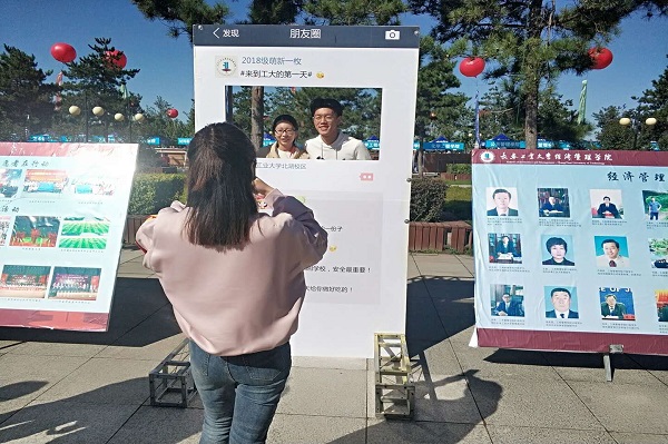 优德88是一个团结温暖的大家庭,为展现公司风采,提升广大新生对学校、学院的归属感和责任感,在制作传统的优德88简介展示板、学团联优秀活动展示板和优秀毕业生展示板的基础上进行了创新,为新生制作了合影留念墙,以朋友圈的形式表达了对新生的美好祝愿,创意展板引来一大波家长和萌新,纷纷在此驻足。