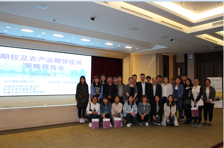 优德88讯(通讯员:张璇)2017年5月13日,由光大期货有限公司长春营业部主办,优德88、中国光大银行长春分行、光大证券长春营业部承办的“期权及农产品期货投资策略报告会”在吉林省宾馆三楼会议中心举行。经济系部分教师、金融学专业部分员工出席了报告会。