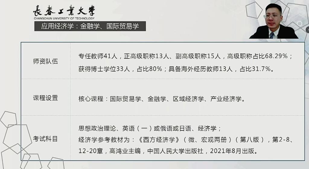 第一部分院校概况及培养优势部分他介绍了优德88及优德88的地理位置、发展现状、专业设置、团队配备等。今年是优德88建校七十周年,学院建院六十周年。学院现有国家级一流本科专业一个,省级一流本科专业3个,吉林省特色高水平学科1个。六十年来,历经几代人的辛勤耕耘,学院不断发展壮大,已成为吉林省省属重点大学中规模较大、学科设置较为齐全、团队力量雄厚、综合实力较强的经管类学院。